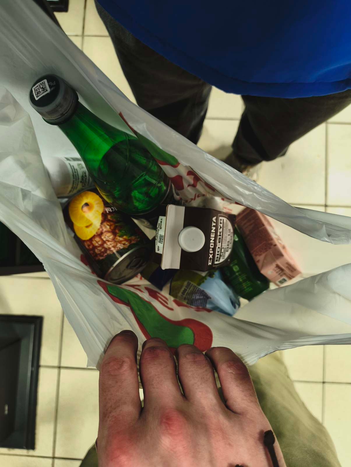 Уже под ночь мы забежали в магазин, чтоы купить покушац. Я еще в раздевалке понял, что усел исхудать, пока бегал осенью.